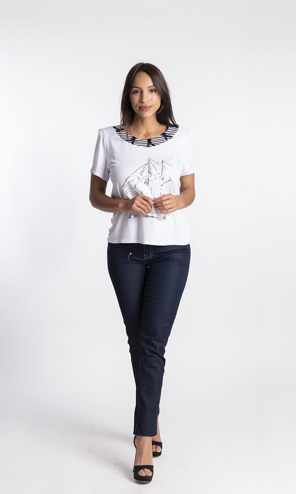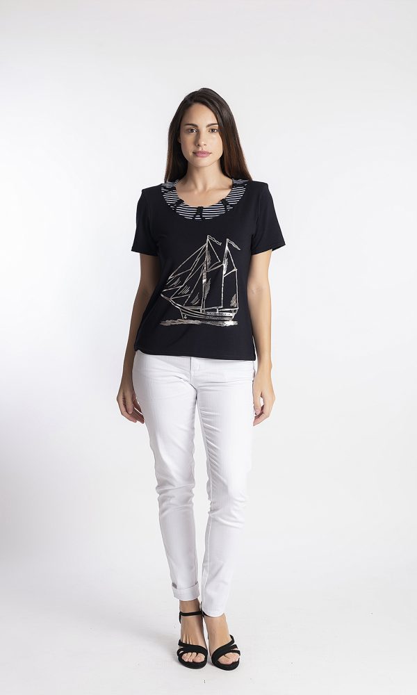 CAMIESTA MANGA CORTA ESTAMPADO BARCO PLATA