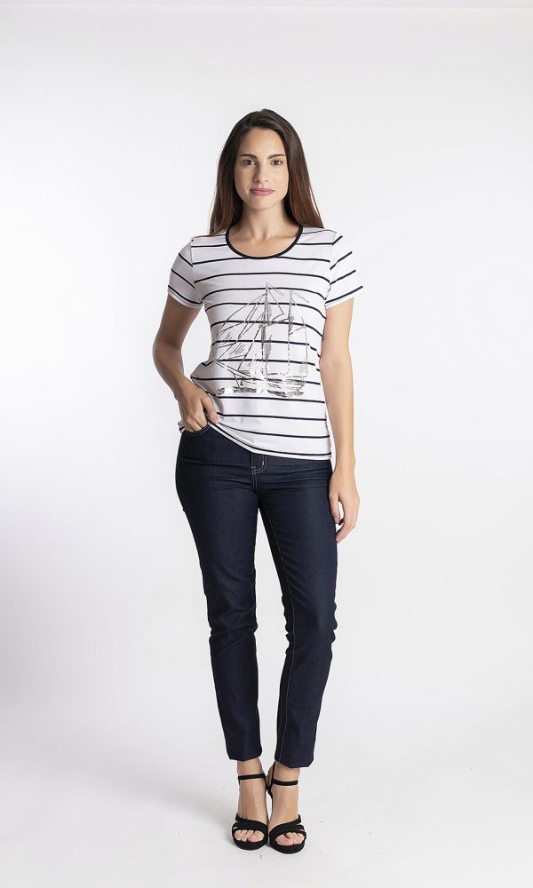 CAMIESTA MANGA CORTA RAYA ANCHA BARCO PLATEADO