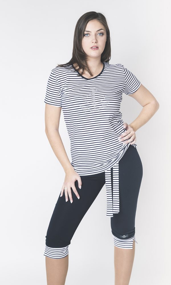 CAMISETA MANGA CORTA RAYA NEGATIVA CON BARCO PLATA