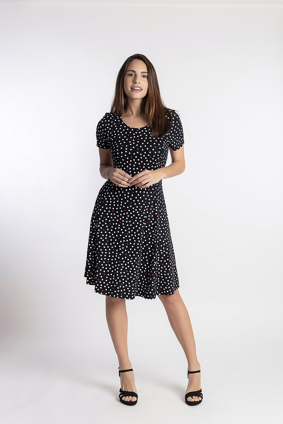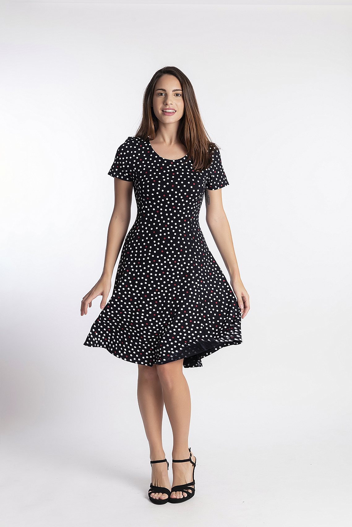 VESTIDO MANGA CORTA CON VUELO TOPO BI-COLOR