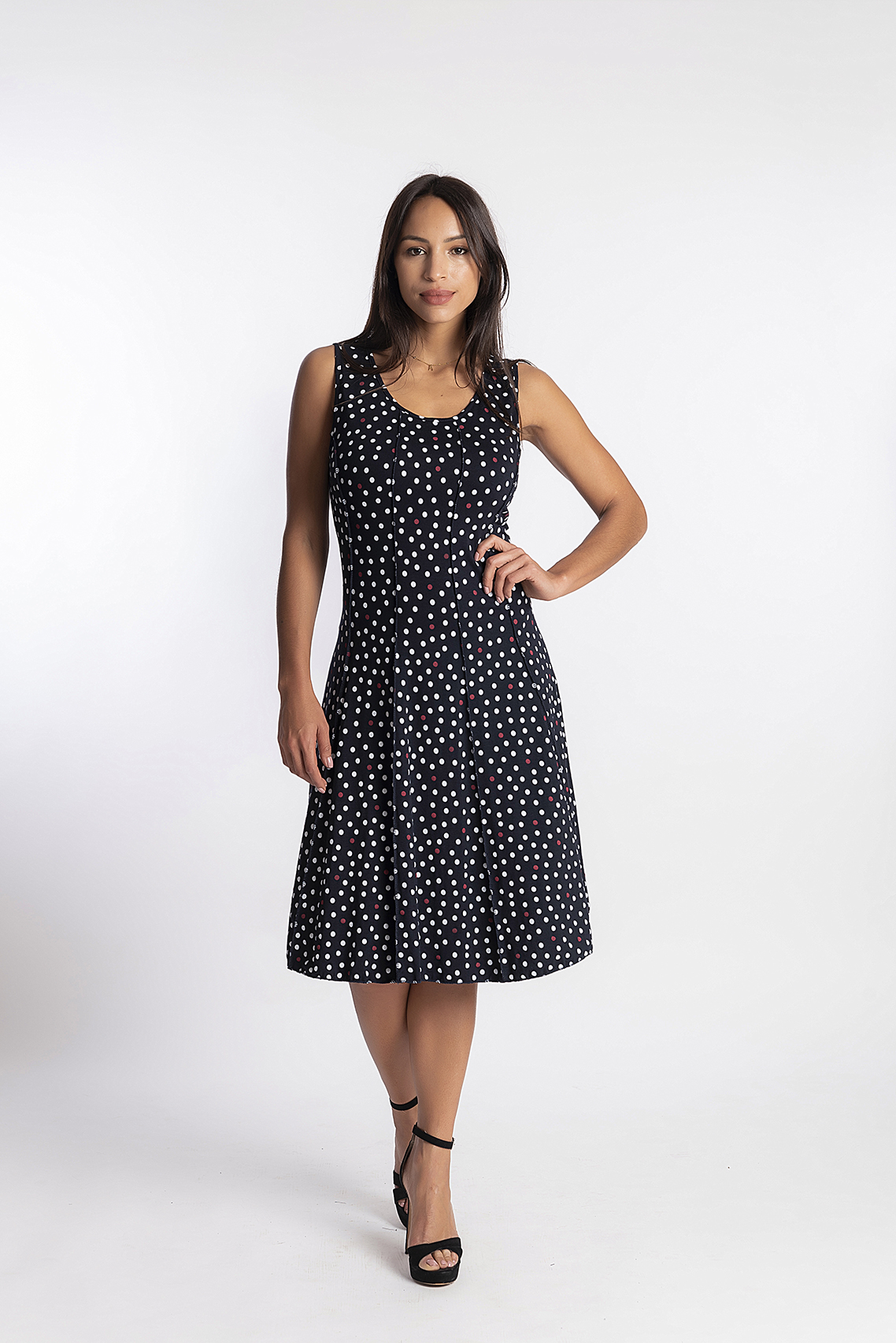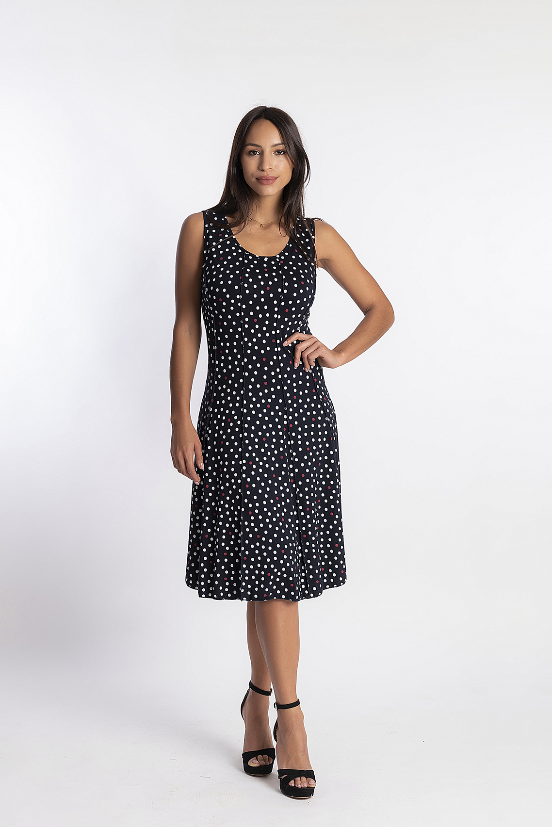 VESTIDO EN PUNTO ROMA MARINERO CON TIRANTE ANCHO Y CUELLO PICO